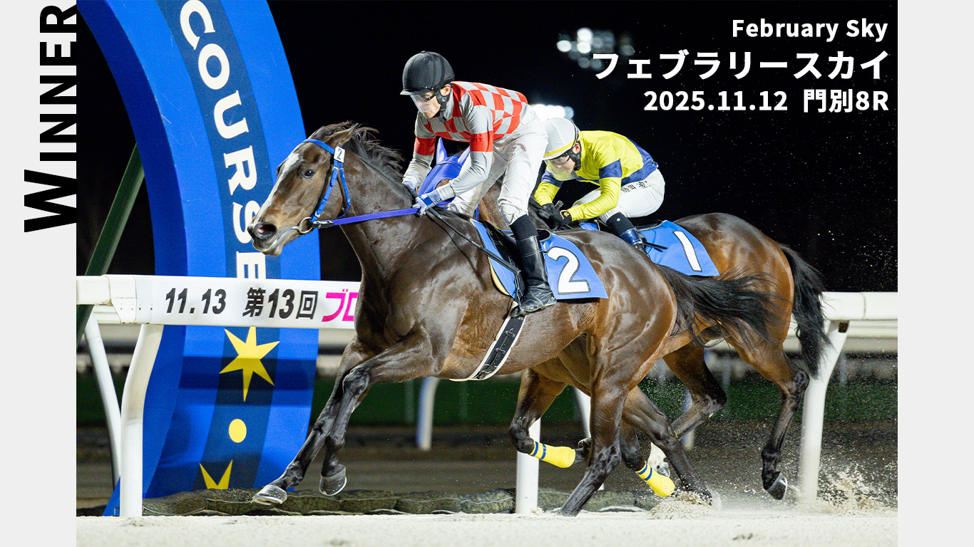 フェブラリースカイ 11.12(水)門別・カンツバキ特別(1着) - 2025年11月12日 レース結果