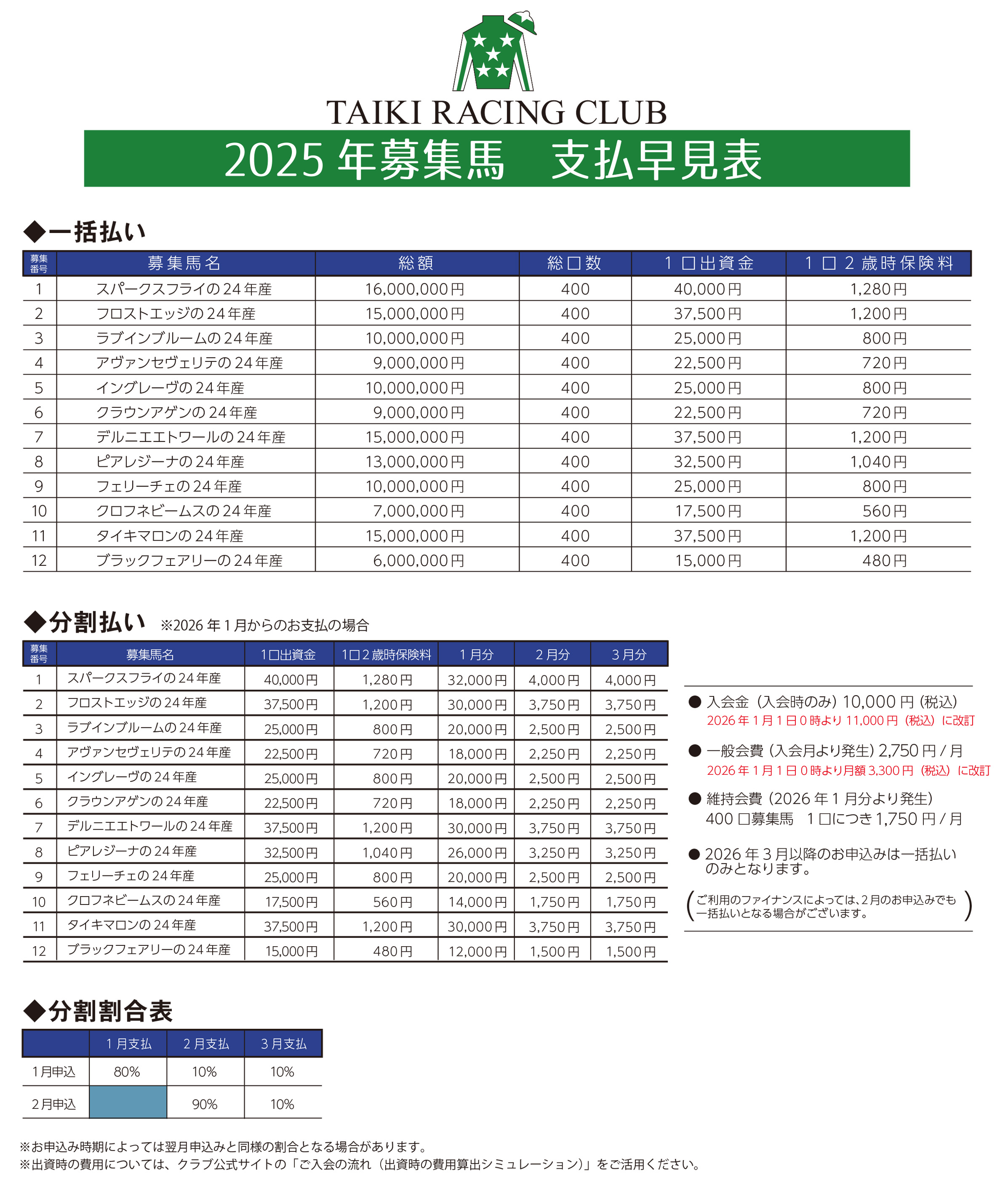 ・2026年1月1日0時改訂の入会金 10,000円→11,000円(税込)および一般会費 2,750円→3,300円(税込)にて算出しておりますのでご注意ください。
